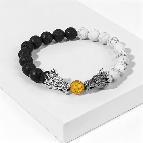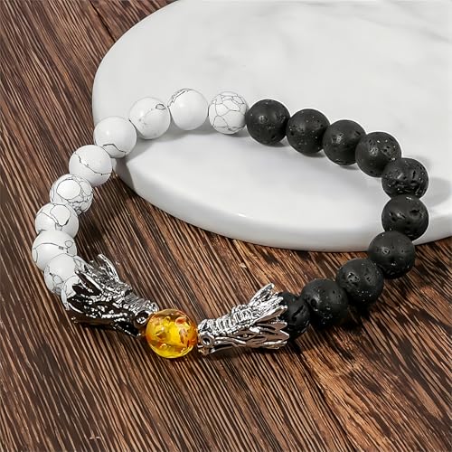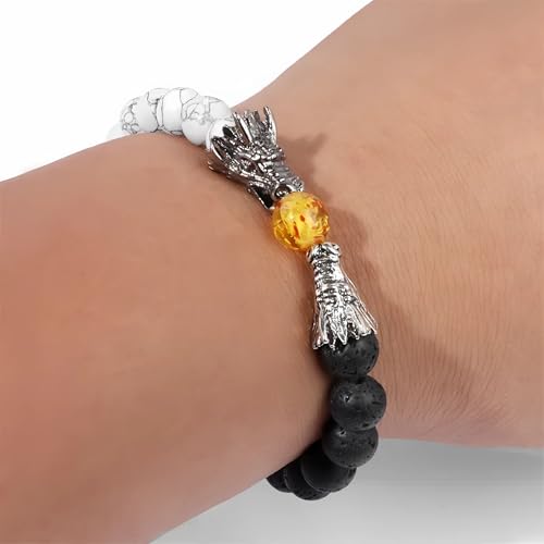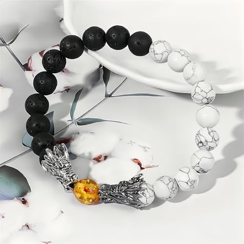 Dragon beads elastic bracelet made of high-quality natural volcanic stone, white pine and topaz, superb craftsmanship, excellent luster.