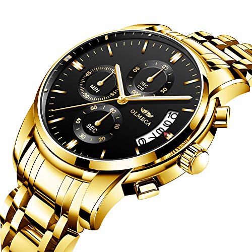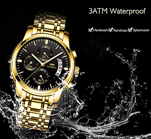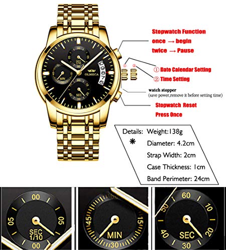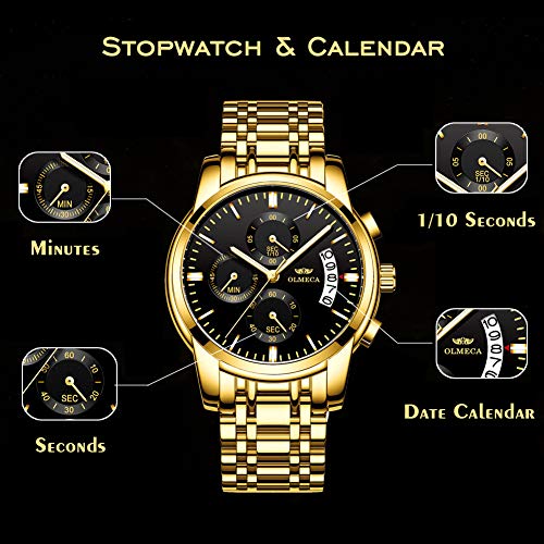 DREAMING Q&P Men’s Watches Luxury Fashion Casual Dress Chronograph Waterproof Military Quartz Wristwatches for Men Stainless Steel Band Gold Black