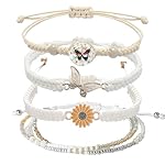 DS 4PCS String beads Charm Bracelets for Teen Girls Dainty cute cartoon Butterfly Daisy Eternal flower Beads Bracelets set for woman and girls Adjustable Stretch bracelet birthday Gift For Friends