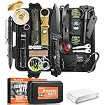 21 in 1 Survival Kits, The survival kit contains an exquisite gift box, waterproof box, knife, survival bracelet, flashlight, multifunctional spoon and card, wire saw, whistle, fire starter & ruler, fire starter rope, water bottle clip, carabiner, emergency blanket, tactical pen, keychain screwdriver, fishing equipment kit, compass, parachute cord