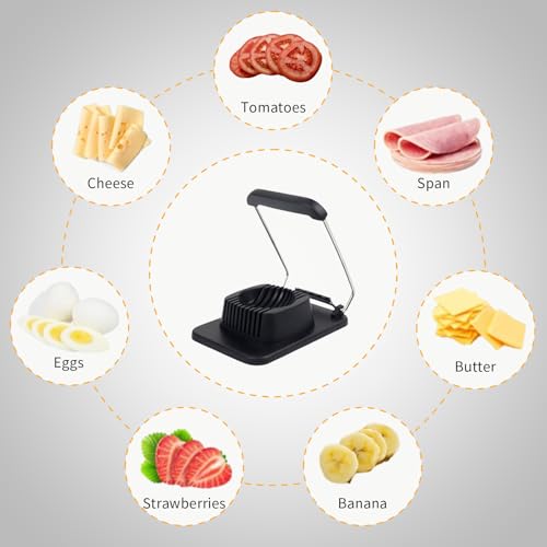 Egg Slicer for Hard Boiled Eggs, Stainless Steel Wire, Heavy Duty Strawberry Egg Cutter for Hard Boiled Eggs, Kitchen Slicer for Eggs Fruit Spam Mushroom Tomato, Black