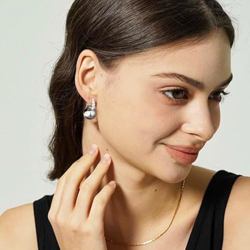 Dainty Gray Pearl Huggie Hoop Earrings – Elegant and Trendy – Perfect for Office, Party, Wedding, Date, Club and Everyday Wear!