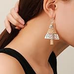 Home Jewelry Earrings Eioi & Lmnm Stainless Steel Layered Christmas Tree Dangle Earrings for Women, Two-tone Gold Silver Dangling Xmas Tree Earrings, Multi-layer Metal X-mas Tree Drop Earrings, Cool Trendy Statement Earrings for Christmas