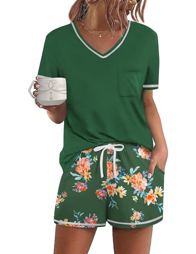 Ekouaer Women's Pajamas Sets Short Sleeve Lounge Sets Sleepwear Casual Two Piece Pjs With Pockets $14.97