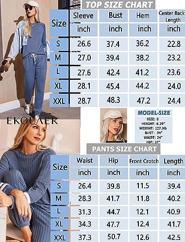 Home Apparel Night Clothes Ekouaer Lounge Sets for Women Ribbed Knit Outfits Pajamas Sets 2 Piece Long Sleeve Sweatsuits with Pockets