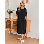 Ekouaer Women’s Nightgown Short Sleeve Sleepshirt Long Loungewear Casual Maxi Lounge Dress House Dresses with Pockets