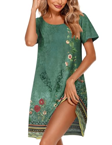 Ekouaer Women’s Nightgown V Neck Striped Button Down Sleepwear 3/4 Sleeves Nightshirts Soft Button Sleep Dress S-XXL