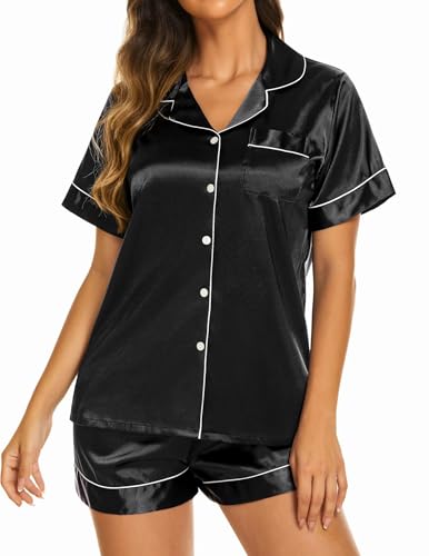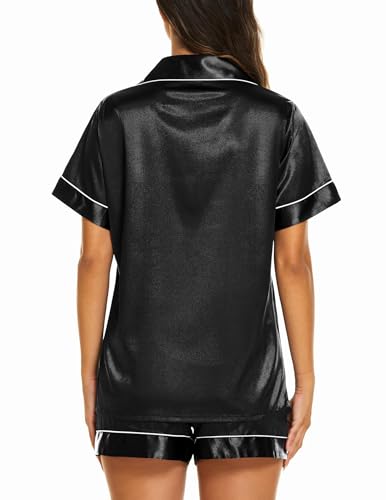 Ekouaer Womens Satin Silk Pajamas Set Short Sleeve Button Down Top and Shorts Sleepwear 2 Piece Pjs Set S-XXL