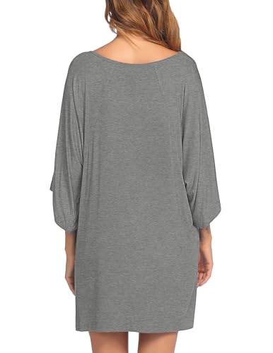 Ekouaer Women’s Sleepshirt Deep V Neck Nightgown Batwing Nightshirt Oversized Sleepwear