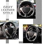 Elantrip Sport Leather Steering Wheel Cover 14 1/2 inch to 15 inch Universal, Padded Soft Grip Breathable for Car Truck SUV Jeep, Anti Slip Odorless Black and Gray