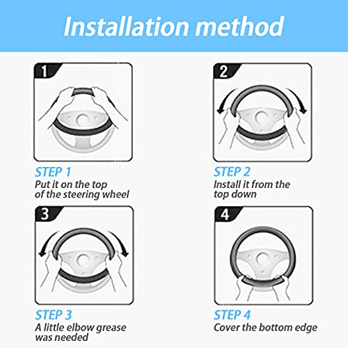 Easy Installation — 15 inches universal steering wheel covers are easy to install. Simply slip it right on to your steering wheel and your good to go. Just place the cover on top of the steering wheel,press and hold the upper part of the cover and gradually lower it with both hands on either side to tighten.