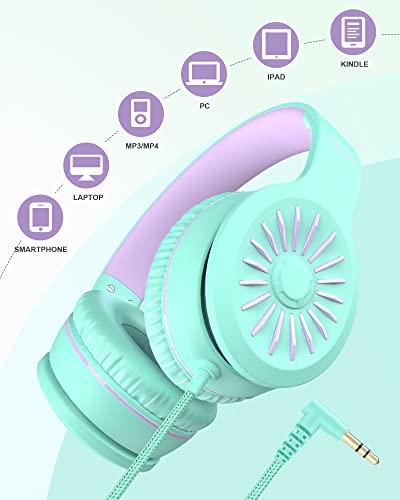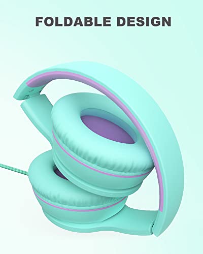 ELECDER i45 On-Ear Headphones with Microphone – Foldable Stereo Bass Headphones with No-Tangle 1.5M Cord, 3.5MM Jack, Portable Wired Headphones for School/Kids/Teens/Smartphones/Travel/Tablet – Green