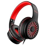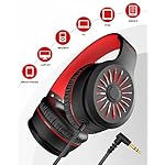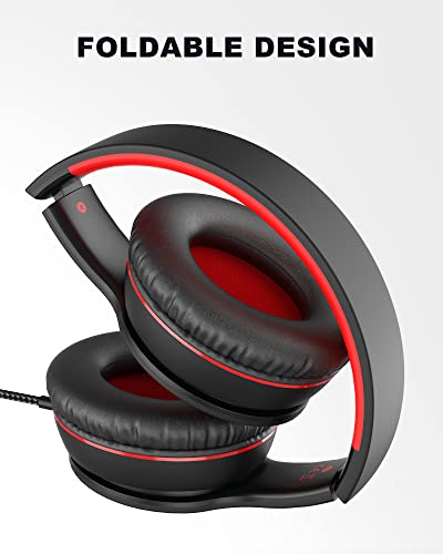 Wired Headphones with Microphone, K16 On-Ear Headphones for Kids with 3.5MM Jack, Foldable Stereo Bass Headphones for Teens School Amazon Kindle, Fire, Chromebook, Tablet(Black Red)