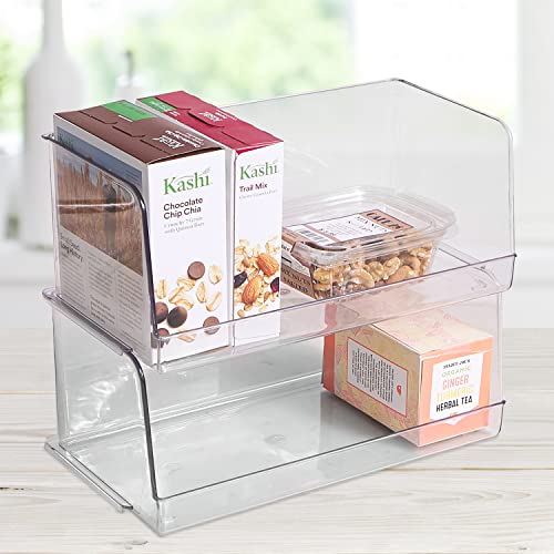 STACKABLE STORAGE: Bins stack to create space-saving, vertical storage in kitchen spaces; The open fronts provide easy access to stored items; Use multiple bins together – stack or use side by side to create the storage solution that works best for you; Keep items organized and easy to find; Try these in closets, bedrooms, bathrooms, laundry rooms, craft rooms, mudrooms, offices, play rooms, garages and more