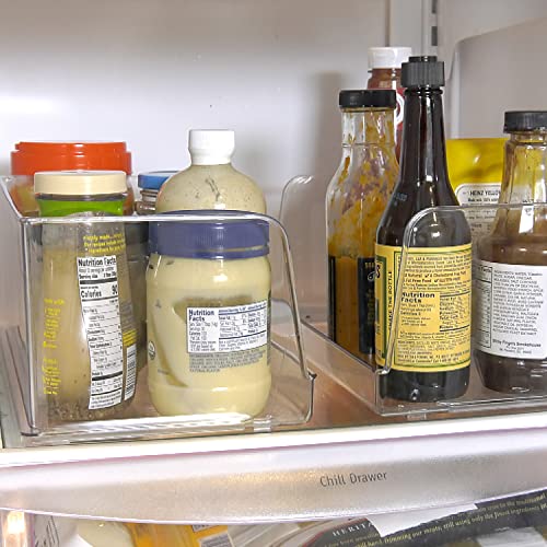 INSTANT ORGANIZATION: These large capacity bins are great for creating a clean and organized kitchen cabinet or pantry; Great for storing dry goods in the pantry, holds canned goods, soups, food packets, seasonings, baking supplies, snack bags, boxed foods, potatoes, onions, and apples; Use on countertops, pantry shelves, or as drawer organizers; Maximize storage space in refrigerator, freezer, cabinets, cupboards, pantry shelves; These bins also work in any room of your home; Set of 2