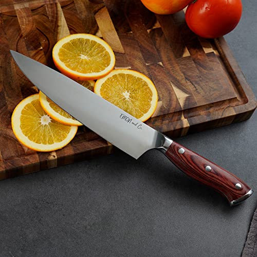 Emon and Co. 8 inch Stainless Steel Chef Knife Professional Wood Handle Blade Guard High Carbon Steel Knife Razor Sharp Chef Knife for Kitchen and Restaurant