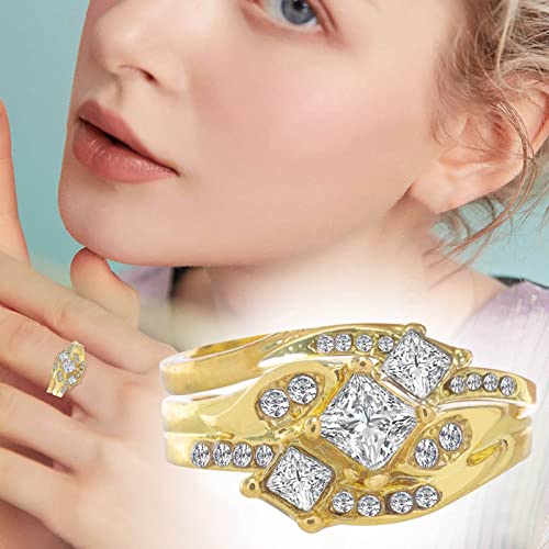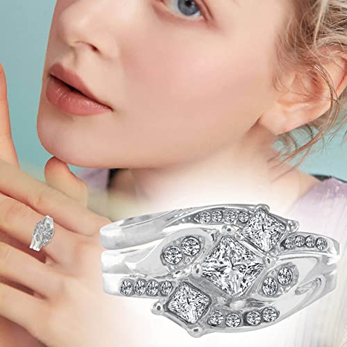 Engagement Rings Wedding Band for Women,Cut Cubic Zirconia Engagement Rings for Bride Platinum Plated Sterling Silver