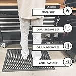 • Anti-Fatigue Mat – The drainage holes in these rubber floor mats make them well-suited to keep work areas clean, with grip and traction to offer anti-slip protection; the thick indoor outdoor mat offers cushioning and prevents fatigue for people who stand for extended time periods in stores, workshops, garages, bars and restaurants