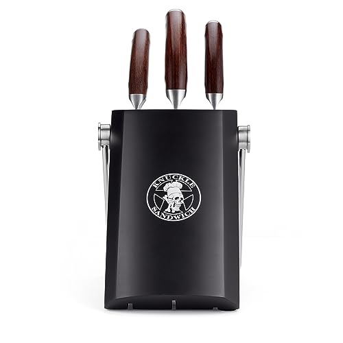 Ergo Chef Guy Fieri Knuckle Sandwich 4pc Knife Block Set Chef knife, Serrated Utility Knife, Paring Knife and Knife Block Premium Stainless Steel Blades with Ergonomic Pakkawood Handles