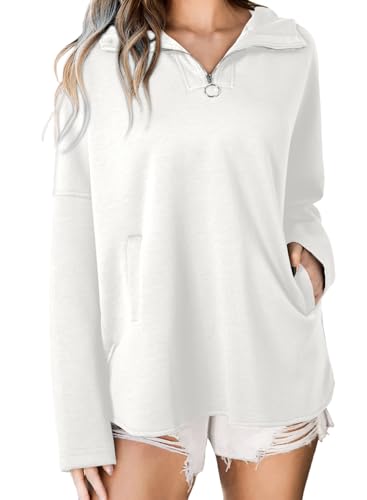 EVALESS Women’s Oversized Hoodies Casual Long Sleeve Half Zipper Pocket Sweatshirt Pullover Tops