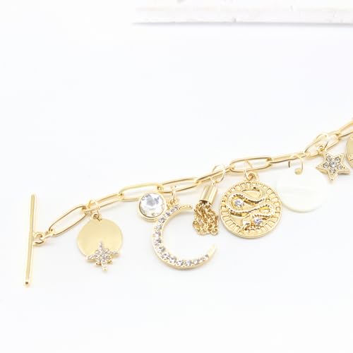 Evil Eye Bracelet for Women, Gold Evil Eye Bracelet, Hand-Made Moon Paperclip Bracelet Mystical Star Bracelet Jewellery