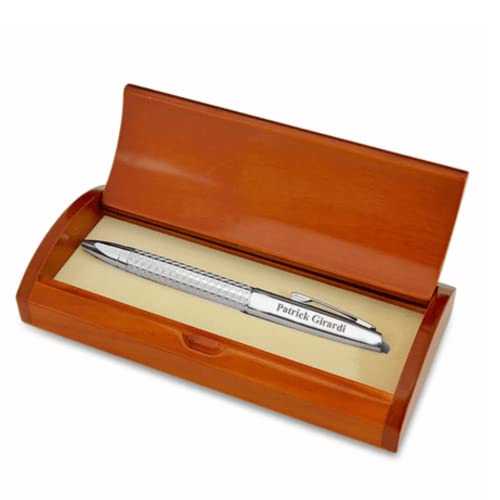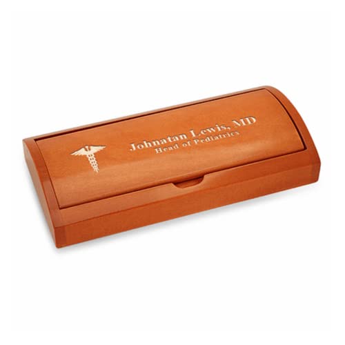 Commemorate graduation from medical school, career milestones, birthdays and holidays with this ballpoint pen set! The pen has a silver textured barrel with polished cap and pocket clip, features a medium ballpoint tip and comes with black ink. It is set inside a rosewood box with an elegant arched lid and a laser-engraved medical Caduceus emblem. Add personalized text to the box and/or pen, available at no charge with your purchase. The set comes packaged in a gift box.