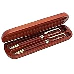 ELEGANT DESIGN: This luxury laser engraved wood set features a cherry finished ballpoint pen and a cherry finished mechanical pencil. Each one is erfectly accentuated with polished gold tips, barrel rings and pocket clips. This elegant desk set comes packaged in a matching wood presentation box with a smooth, satin finished face.