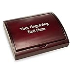 This cherry finished wooden gift set features all the writing instruments you’ll ever need, a ballpoint pen, a rolling ball pen and a mechanical pencil. The 2 pens and 1 pencil are coated in a black lacquer and feature brass colored accents. All of the items in this personalized pen and pencil desk set are held securely in place with a foam lined interior. We’ll be happy to add a free laser engraving to the top of the arched wooden gift box and/or the pens & pencil inside for a great personal touch.