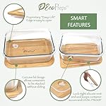 SUSTAINABLE, STACKABLE BAMBOO LID: Our concave bamboo tops are durable, reusable, and recyclable, and completely free of plastic, BPA, PVC, and phthalate; easily STACK and NEST multiple glass food containers to save space and keep meals in place