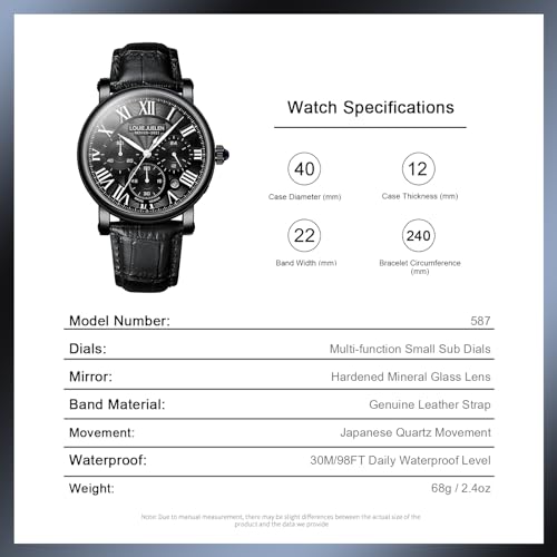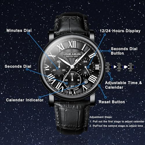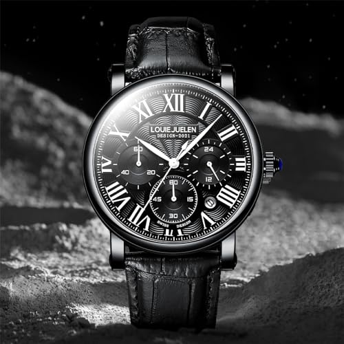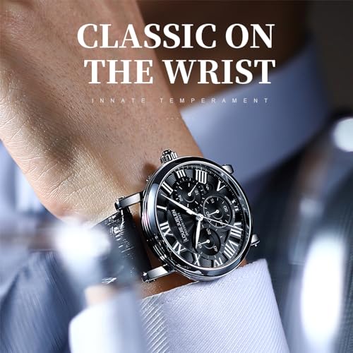 eYotto Men’s Stylish Business Watch, Multifunction Quartz Movement Chronograph Roman Numerals Analog Calendar Date Waterproof Leather Band Wristwatch, Formal Casual Dress Gift Watch for Men