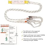 - Double Leg Internal Shock Absorbing Safety Fall Protection Lanyard ASTM F1774 Certified: The Shock Absorbers are designed for up to 6-foot free fall applications with a maximum capacity up to 310 lb. (141 kg) including clothing, tools, etc. with a maximum deployment distance of 48 inch/1.2m & average arresting force 900lbs. Statically tested with a minimum breaking strength more than 5,000 pounds (22.2 kN).