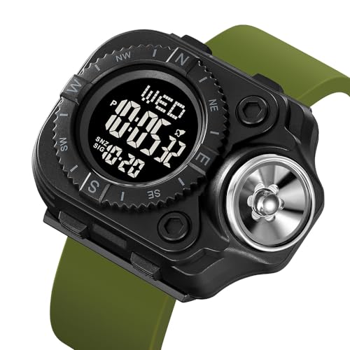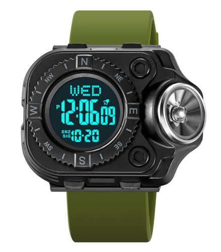 Home Wristwatches Fashion Mens Square Large Watch Face LED Digital Watch LED Flashlight Silica Gel Strap EL Light 2 Time Multifunction Sports Wristwatch