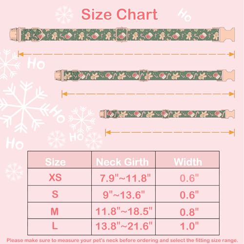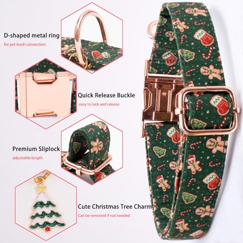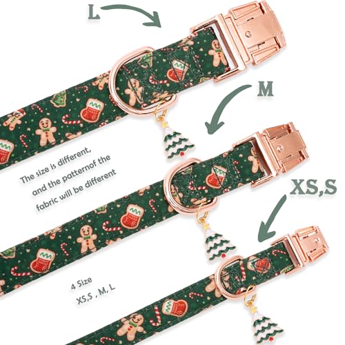 Faygarsle Green Dog Collar Christmas Design with Bow Metal Buckle Gingerbread Men Trees Pattern for Small Medium Large Dogs Bowtie Collar Cute Stylish Girl Christmas Dog Collar L