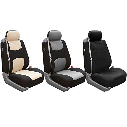 FH Group got you covered! Our premium cloth car seat covers not only provide the best protection for your car’s upholstery against any type of mess but they also enhance the looks of your car’s interior. No need to worry anymore about spills, stains, mud, or anything damaging your original car seats because this car seat protector got your back. Every car seat cover we make is built with high-quality, durable materials that will protect your car’s upholstery at all times. We offer automotive seat covers in numerous fabrics, colors, and designs, so you can easily find the seat cover for cars that fits your style the most. We have car seat covers for women, for men and for everyone. Our bucket seat covers are compatible with most sedans, SUVs, and vans’ bucket seats thanks to the universal high back seat cover design that delivers the snug fit you’re looking for, no matter if the front seats’ headrest is removable or not. Also, because safety is one of our main goals, this front set of cover for car seats is airbag compatible (officially tested!). We understand messes happen, that’s why these waterproof seat covers for cars are convenient for any type of driver. FH Group car seat covers are a great car interior accessory for your vehicle. We have it all: car seat covers for SUV, car seat covers for autos, car seat covers for vans, you name it!.
