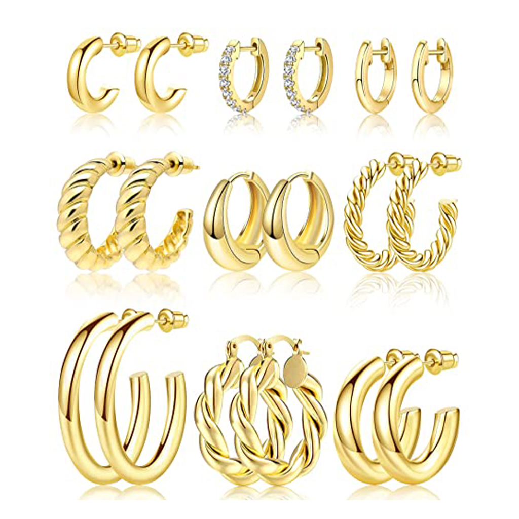Adoyi 9 Pairs Gold Hoop Earrings Set for Women Girls Gold Twisted Huggie Hoops Earrings 14K 18K Gold Plated for Girls Gift Lightweight $17.99