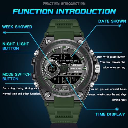 Military Outdoor Watch, Multifunction for Daily Use, Fashion Large Face Digital, Cool Army Masculine Design, Best gifts for men who like doing sports