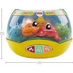 Interactive pretend fishbowl that rewards baby’s put-and-take play with lights, music, and educational phrases