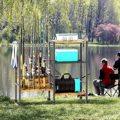 • 【Multifunctional】This garage fishing rod rack is a multifunctional, large capacity storage cart. It consists of a three-Tier storage rack and a corrugated bracket for storing fishing rods. All you need is a fishing rod rack to neatly store your fishing rods, nets, and fishing accessories. Meet your daily storage and display needs.