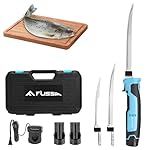 FLISSA Cordless Electric Fillet Knife for Fish with 8″ and 10″ Stainless Steel Blades, Rechargeable Electric Knife with Non-Slip Handle, 2 Packs Long Lasting Lithium-ion Battery, Portable Carry Case