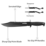 FLISSA Survival Hunting Knife with Sheath, 15-inch Full Tang Fixed Blade Tactical Bowie Knife with Sharpener & Fire Starter for Camping, Outdoor, Bushcraft