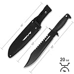 15″ Fixed Blade Hunting Knife: Ultra-sharp combat knife, stronger than traditional hunting or bowie knives. Overall Length: 15 inches; Blade Length: 10 inches; Thickness: 5/32 inch; Weight: 16.8 oz