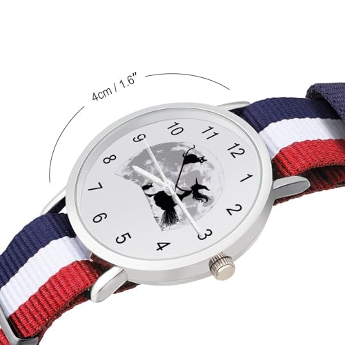 Home Wristwatches Flying Witch On Broomstick Full Moon Black Cat Adult Casual Watch Wrist Watches Sports Watch Business Wrist Band Watch for Women Men