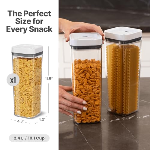 - A SIZE FOR STORING EVERY SNACK: This square 2.7 L container is BPA-free, food-grade plastic that safely stores and displays cereal, pasta, oatmeal, coffee, flour, rice, beans, and more. Your kitchen will be clean and food will stay fresher longer.