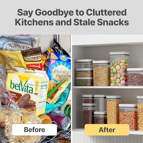 - ULTIMATE KITCHEN ORGANIZERS: With clear storage, you’ll know exactly what you have. Store pantry staples like cereal, flour, sugar, pasta, rice, coffee, nuts and snacks. Save money by knowing exactly what you have, so you don’t buy duplicates.