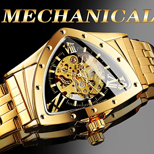 FORSINING Triangle Skeleton Men’s Automatic Mechanical Watch Luxury Gold Black Stainless Steel Watches Waterproof Luminous Sports Wristwatch