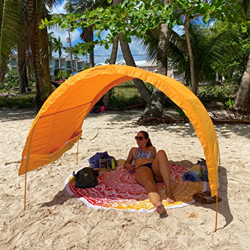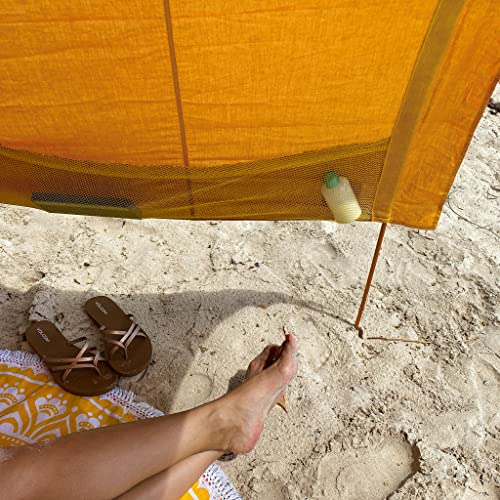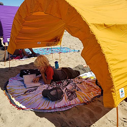 *NEW ULTRA COMPACT MODEL* Spend more time relaxing outside with our classic beach tent! Designed in Canada, our portable shade cabanas offer natural sun protection that won’t blow away, for the beach or park. Beautiful colours define your space and make it easy to spot your sunshade from the water. Quick & easy one person set up & take down. No tent pegs, sandbags or tie lines needed! Compact & lightweight beach shade, even the kids can carry it! Room for 2 adults & 3 kids, or 4 adults Fits in a CARRY-ON suitcase for travel + beneath the stroller Open concept design for ventilation & air flow, never gets overheated. Enjoy the cool breeze + don’t block the view for those behind you! Strong, aluminum poles stand up to high winds Adjustable shade canopy for high or low sun & to block blowing sand Handy storage pockets keep things tidy & sand-free; from your phone & sunglasses to a good book. *Add heavier items like water bottles for extra weight on windy days Dogs LOVE Suniela shade cabanas Large footprint keeps the whole family cool & comfortable, there’s even room for the cooler! 4′ (1.2m) center height – accommodates most beach chairs Machine washable, hand sewn cotton canopies – You’ll love the quality & beauty of our fabric Creates a safe space over the kid’s sandbox or wading pool, protected from the hot sun For soccer games, camping trips, the beach, travel… or just in the backyard. Suniela will quickly become your favourite outdoor accessory! DIMENSIONS Assembled: 4.5’ x 7’ (31 ft²) (1.4m x 2.1m) Center Height: approx. 4’ (1.2m) Packed: 20” x 6” x 4” (51 x 15 x 10cm) Weight: 3.5 lbs (1.6 kg)