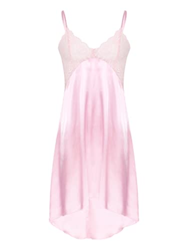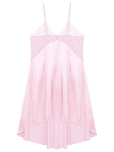 Freebily Men’s Sheer Lace Patchwork Satin Sissy Dress Irregular Hem Pajamas Nightdress Nightwear