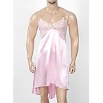 Home Apparel Night Clothes Freebily Men’s Sheer Lace Patchwork Satin Sissy Dress Irregular Hem Pajamas Nightdress Nightwear