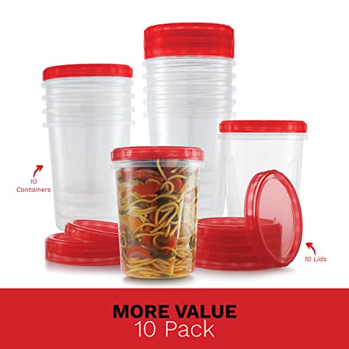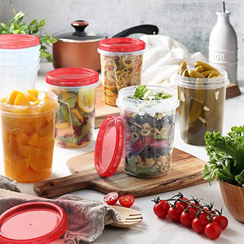 Freezer Containers for Food [32 Oz – 10 Pack] Freezer Storage Containers with Twist Top Lids | Reusable Plastic Soup Containers with Lids | Quart Containers with Screw on Covers | Leakproof, BPA Free
