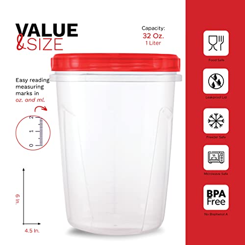 - Our quart containers with lids are great as travel containers, lunch containers, soup containers for freezing, to-go containers, and food storage containers. 32 Ounce is equivalent to 1 Liter /1 Quart › See more product details